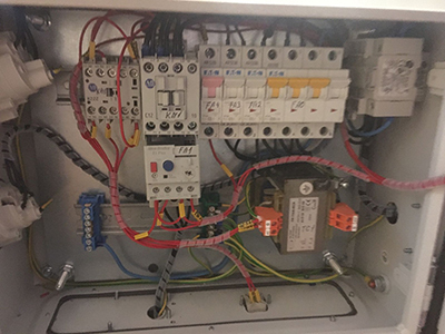 Все электроэлементы находятся в водонепроницаемом и пыленепроницаемом ящике, который укреплен на раме. Все управляющие компоненты удобно доступны.