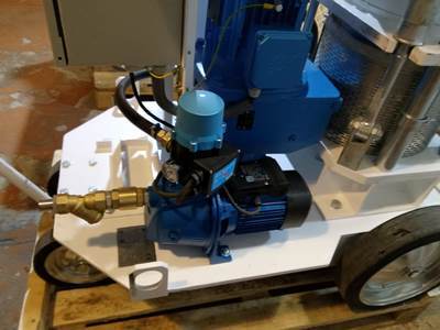 Торкрет - установка MPCS 4 FC с частотником оснащена массивными колесами и передней управляемой колесной парой, что позволяет удобно ей манипулировать. В случае применения Торкрет - установки MPCS 4 FC с частотником на стабильном рабочем месте, можно поставить ее без ходовой части с приспособлением для манипуляции при помощи высокоподъемной тележки.